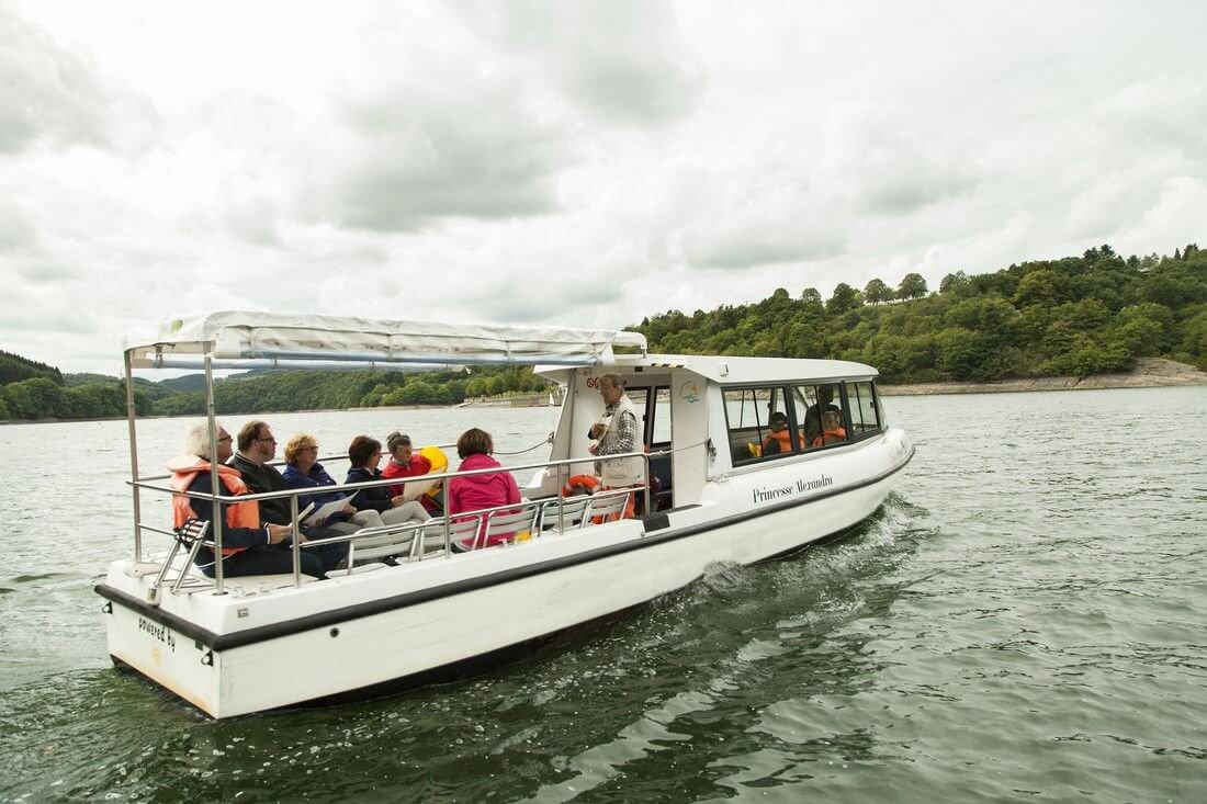Discover Luxembourg’s largest drinking water reservoir from a new perspective by taking a guided nature tour on a solar-powered boat! Learn some interesting details about the flora and fauna on, in and around the Upper Sûre reservoir lake, facts about the history of the lake and the region and the topic of drinking water conservation. After exploring several remote branches of the lake, the itinerary also takes in a land trip to the “Burfelt” forest discovery centre.
